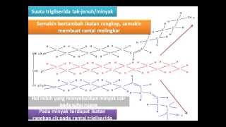 Minyak dan lemak sama-sama trigliserida, akan tetapi pada suhu kamar lemak memiliki struktur yang lebih padat dan minyak cair. hal ini disebabkan oleh ...